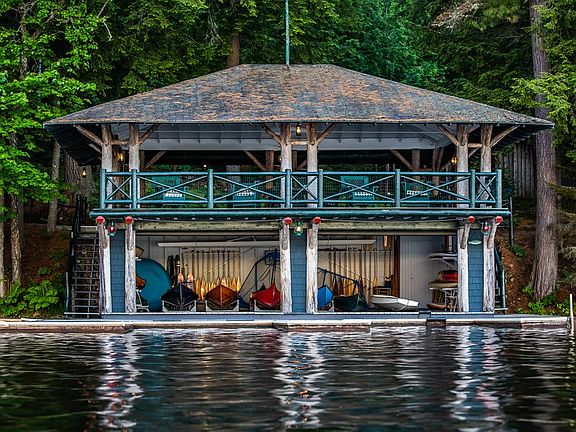Platinum Luxury Auction to be held August 1st 2020 at 4:00pm WITHOUT RESERVE. An Open house will begin July 9th till auction date from 12-5pm. Along the westerly shore of Upper St. Regis Lake prominently sits Camp Woodmere on 32 acres of land with 1900ft of shoreline with additional frontage on Bear Pond. Established in 1883 within the great camp tradition this family compound consists of 25 buildings well maintained and preserved over the last century. Featuring 8 sleeping cabins each with a full bathroom, magnificent dining cabin with stunning native stone fireplace, polished southern pine floors and newly upgraded kitchen. Along the shore is a two story Pavilion Boathouse with an open-air deck providing exceptional views up the lake plus an octagonal Tea House with lead windows and 4-slip boathouse. A truly rare offering!