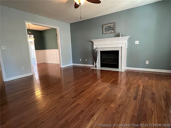 Lovely Cape Cod home in beautiful Carolina Lakes where you can enjoy a vacation lifestyle year round with boating, fishing, swimming, tennis, pickleball, golf, & walking trails. This is a one owner home that has been loved & cared for over the years. In true southern style, enjoy rocking on the front porch waving to your neighbors out walking their dogs Or relax on the large screened porch. This home has 3 bedrooms plus a bonus room with closet and Master on the first floor. Beautiful staircase, hardwood floors & cozy fireplace in the formal living which is open to the dining. Kitchen has breakfast bar & pantry. Sunken family room with cathedral ceilings and lots of windows. This home not only has a garage, it has a separate 16x20 workshop with roll up door which also makes wonderful storage space or convert for additional living space. Extended parking for your boat & walking distance to lake or pool. Roof just 2 years old. New HVAC will be installed at closing Or $8500 credit given.