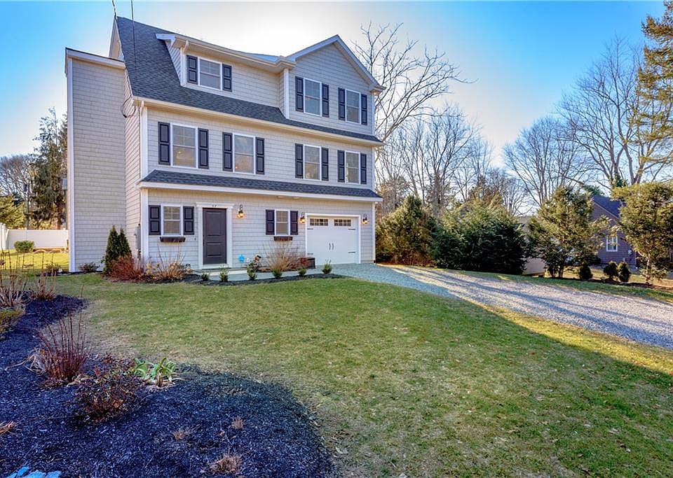 Jamestown Shores - Built in 2016 this well maintained home is in move in condition. Offering many wonderful details, granite kitchen counters, with tile backsplash, s/s appliances, and wonderful center island. There are hardwood floors throughout, crown molding, abundance of storage closets, and wonderful light filled rooms. The 1st level offers a large entry foyer, den/office, full bath with shower stall, laundry and 1-car garage. The 2nd level has a lovely open floor plan, kitchen, dining, lavette and south facing deck. The upper level has a spacious master suite, with full bath, and an additional guest bedroom and hall bath. The house has central air, a whole house generator, alarm system, and much more to offer. The design plan provides for a future elevator isf needed. Located in the southern Jamestown shores neighborhood, this location is easy access to RT 138, to commute to Providence, or Newport. * Subject to Seller finding suitable housing prior to closing*