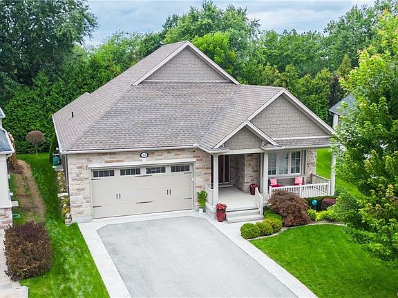 Welcome to 57 Stoneridge Crescent in the exclusive Tanbark Trails in beautiful St. Davids . This custom built 2 plus 1 bedroom bungalow features open concept custom kitchen dining room and spacious great room, gas fireplace, quartz counter tops . vaulted ceilings throughout, main floor laundry with access to garage, closets and large pantry, Primary bedroom has 4 pc ensuite and walk-in closet. Beautiful hickory and tile floors throughout the main floor. great room leads out to a covered patio overlooking the large premium pie shaped lot. Lower level features a large family/rec room, 3rd bedroom and 3pc bathroom. Large double car attached garage, sprinkler system, covered eavestroughs