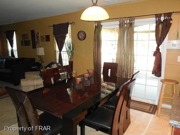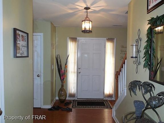 -Two story 4 bedroom home close to Ft. Bragg & convenient to Raleigh! Beautiful foyer entrance. Plenty of space for entertaining downstairs with 1/2 bath for guests. Front room can be an office or LR. Family room is open to kitchen & breakfast area. Formal dining rm. Covered patio is ideal for grilling. Fenced yard w/ shed for storage. Spacious bedrooms & master is split from remaining 3 down the hall. Laundry room is upstairs convenient for loads of clothes to be put away! Call now to see!