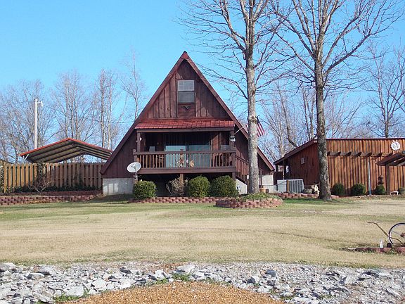 Atop of a small hill sits this unique A-Frame that overlooks Toms Creek Bay – part of the TN River backwaters. The 1103 ft main floor of the kitchen den combo are open and spacious. Large laundry room and bathroom located on main floor. Huge master suite also located on main floor with walk in closet and master bathroom. Gorgeous view of the bay from large windows. The 360 sq ft loft of the home is an open one bedroom with plenty of closet space. The home features beautiful hardwood flooring through out, electric central A/C, gas central heat, and comes completely furnished with all furniture and appliances remaining. The property has a 2 car detached garage, 2 car metal carport, and a shop with an attached bunk house and a covered front porch. There is a large half covered front porch over looking the water, perfect for morning enjoying morning coffee or relaxing in the evening. Beside the home is a 16x16 patio with a pergola and Viking hot tub off the side. This home at 57 Sunflower Rd Linden TN is 14 miles from Linden & Lobelville, 70 miles to Jackson TN, and 90 miles to Nashville. For more information call United Country Richardson Real Estate & Auction, Inc at 931-589-2455.