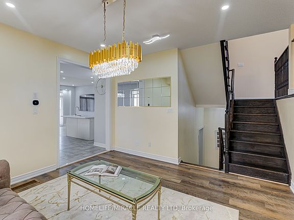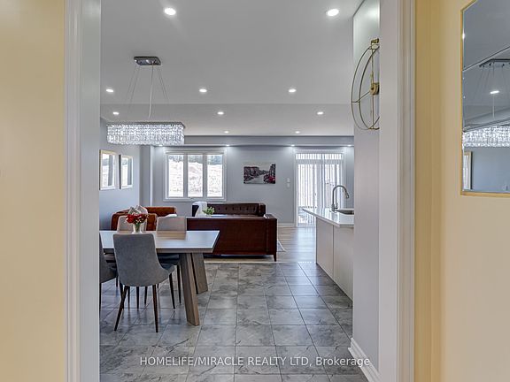 This stunning double-car garage home is located in Alliston's most prestigious, family-oriented community. Offering over 2,100 sq. ft. of above-grade space and a total of approximately 3,000 sq. ft. of living area, this residence is perfectly designed for comfort and functionality. Situated on a spacious pie-shaped lot, the home features a walkout basement leading to the garage. The fully finished basement includes a full bathroom and boasts high ceilings, making it ideal for entertaining or as a potential rental unit for additional income. Enjoy privacy with no sidewalk and no neighbors behind. The expansive family/great room includes a balcony, perfect for hosting large gatherings or enjoying family entertainment. The newly upgraded kitchen is a chefs dream, featuring quartz countertops, a stylish backsplash, a gas stove, and modern pot lights throughout. Elegant flooring extends across the entire home, enhancing its sophisticated appeal. This exceptional property offers a rare combination of luxury and practicality.