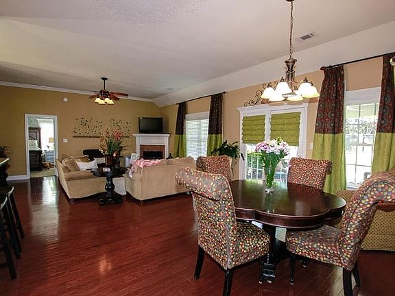 ENJOY QUIET, RELAXING SURROUNDINGS & no neighbors behind...IMMACULATE HOME convenient to Robins AFB; beautifully landscaped w/a privacy fenced backyard & full yard sprinkler system; rocking chair front & back porches plus a huge patio; very open floor plan w/volume ceilings; great room features corner, ventless gas fireplace; lovely kitchen w/lots of cabinets, breakfast bar, tile backsplash & refrigerator; master suite features master bath w/jetted tub, separate shower & dual vanities; lots of storage..CALL