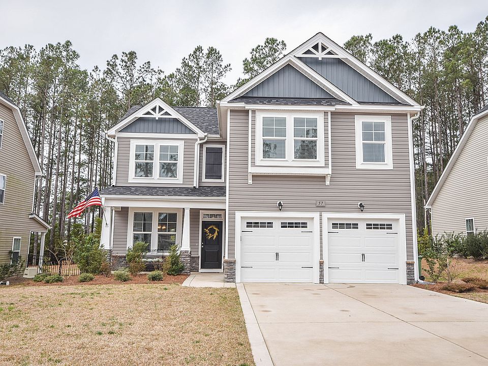 You will not find a more beautifully maintained home on the market. Gorgeous custom and upgrade touches throughout set this beauty apart from the rest. From the wood accent walls, framed out mirrors and upgraded lighting to the custom shelving and cabinetry in the laundry room. Stunning open floor plan with a chef worthy kitchen featuring a gas range, granite countertops, oodles of cabinets and roomy eat in area. Formal dining has custom paint, coffered ceiling and picture frame molding. Head to the 2nd level and relax in the loft area with a good book. Stunning master bedroom with bench seating and vaulted ceilings. Master bath has new ceramic tile flooring, dual vanity, separate garden tub and shower. 2 master closets! Additional 3 bedrooms are in mint condition. Head out back with your beverage of choice and enjoy the space around the fire pit. Located close to the onsite restaurant and bar, pool, playground and indoor gym.