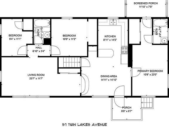 Set on a quiet dead-end street within walking distance to Lake Tiogue, this 3-bedroom, 2-bath ranch offers a comfortable layout with a living room, dining area, and a galley-style kitchen with ample cabinetry, generous counter space, and stainless-steel appliances. The primary bedroom has a full bath, large closet, and access to a private sun porch overlooking the backyard, while two additional bedrooms and a second full bath are located on the opposite side of the home. Additional highlights include first-floor laundry, a deep fenced yard with a new shed, and a one-year-old roof and oil tank. A great opportunity to make it your own.