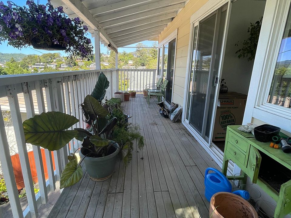 Spacious 2 bedrooms 1 bath, upper unit located just up the hill from the Montecito Shopping Center, Whole Foods, Trader Joes, Pete's Coffee, Dominican University... Best Neighborhood! Gorgeous view of Mt Tam from living room with large private deck. New laminated floors throughout. On site coin laundry. Water and garbage included. One assigned covered carport. Available July 1st. PLEASE NO PETS and NO Smoking! Open house Sunday 6/26 from 12noon-2pm. Section 8 welcome! No more than 3 people please! Water and garbage included. NO smoking, NO pets. Security deposit due at signing.
