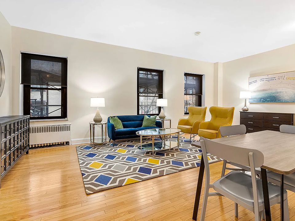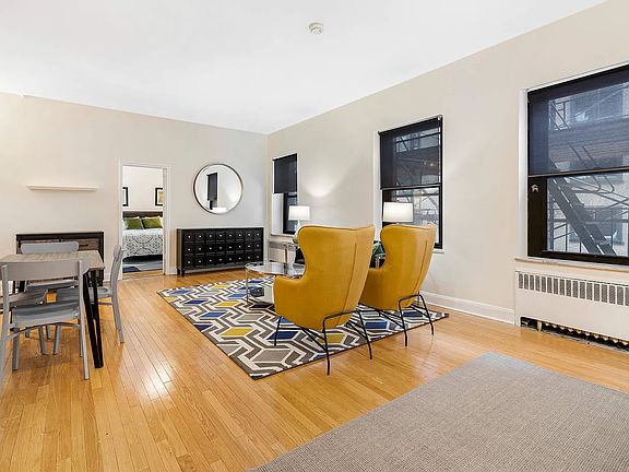 True two bedroom apartment in doorman condo one block from Central Park South for only $925,000! Great investment property in condo building which permits sublets as short as 6 months. This incredible apartment features an enormous living/dining room with three windows facing south over 58th street. The primary bedroom has two windows also facing south and the second full size bedroom facing north. Each bedroom has 2 closets. The modern kitchen is fully equipped with a full size refrigerator, gas stove, dishwasher and microwave and the windowed bathroom has a large walk in shower plus vanity sink and large mirrored medicine cabinet. The apartment has hard wood floors and high ceilings throughout.
