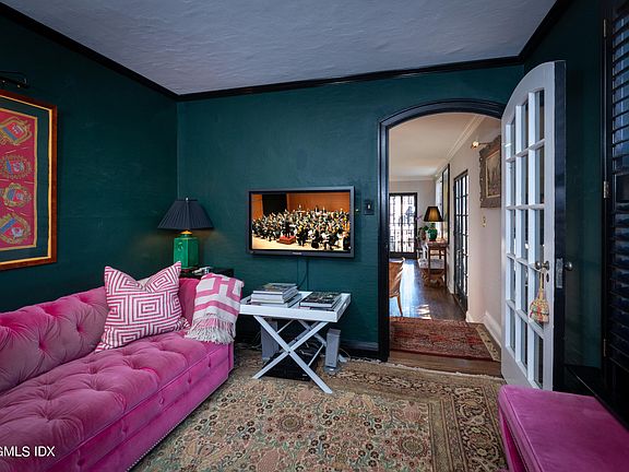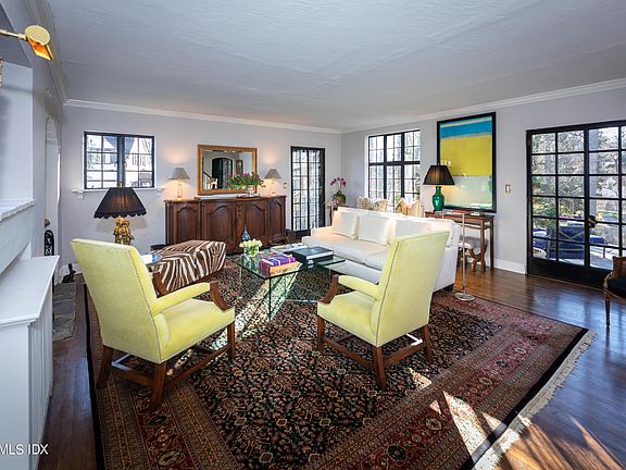 Impeccable, stunning 3 bedroom Cotswold on .8 of an acre in the heart of the Milbrook Association. An extremely beautiful turn-key home set high on lovely property and flooded with natural light. Exquisite detailing throughout the versatile floor plan. The very pretty living room with wood burning fireplace and glass French doors opens to an expansive entertaining terrace and balcony overlooking the gorgeous property. Handsome den and lovely formal dining room. Gourmet chef's kitchen with island and dining area opens through French doors to a spectacular outdoor dining terrace. Office on 2nd floor and exercise room in lower level. Close to town and schools in an amazing neighborhood. Private Milbrook Association with security guard.