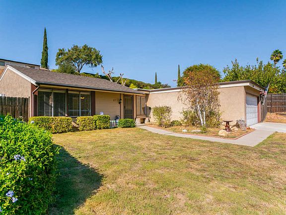 Hard to find 4-bedroom 2-bath home on a large lot in Miramonte. Enter into the big living room with high ceilings and stroll through to the sunny family room which leads to outdoor area. There is an over sized two-car garage with an additional storage area. This home has a mountain view, fenced back yard, solar panels, forced air, high ceilings and is in the Ojai School District. It is located across from the Ojai Valley Trail. There is a newer roof, driveway, water heater and primary bathroom shower tile. The cobblestone patio in the backyard is the perfect spot to enjoy the pink moment or build a pathway to the upper area for a better viewing vantage point. It's a perfect location for an easy Ventura or Santa Barbara Commute. Come and make this lovely home in a quiet neighborhood yours!