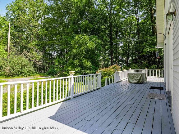 Unique Custom Contemporary privately nestled on 8 beautiful acres offering the serene retreat you have been searching for yet just an hour's drive to the George Washington Bridge. Stretch out with all your guests on the 42' wraparound deck. The terracotta tiled foyer opens to the expansive living area with stone fireplace, vaulted ceilings and deck access. Floor to ceiling windows flood the home with natural light bringing in the beauty of your surroundings. Gleaming hardwood floors throughout. Perfectly situated gourmet kitchen with granite countertops and stainless steel appliances overlooks the main living area and full dining Room. This home boasts convenient main floor bedroom plus a spacious additional room with so many potentials. Easily accessible and beautifully tiled main floor full bath with pocket door. Upper-level primary bedroom suite w/double closets. personal full bath w/spa tub, double sinks and skylight. Expansive third bedroom w/vaulted ceiling offers tons of storage with a full wall of closets. Full guest tiled bath. Comfy lower level family room w/bookcases flows to an abundance of cabinets and storage in the huge utility room. Workshop, heated garage, handy commode and slop sink make creative projects a breeze. Whole house generator. Gorgeous mountain views with clearing. The location is perfect. Minutes to art galleries, artisan studios, farmer's markets and restaurants and just a short trip to Stewart International Airport, NYS Thruway and Sugar Loaf Ski Resorts.