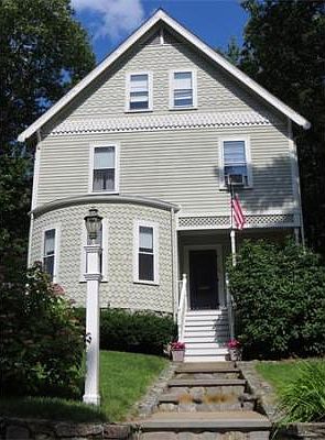 Charming Shingle-style, bow-front Victorian in prized Highlands location, convenient to public transport and major highways as well as neat attractions of downtown Melrose. Lots of attractive architectural details (pocket doors, wainscoting, oak and hard pine floors, restored designer shingles and fascia boards on front), joining with recent improvements (new roof and chimney liner (2012), masonry retaining walls for driveway (2008), deck w/ French-door entry from kitchen (2005), newer furnace, Bosch dishwasher, and range, and some new windows. Potential in 3d floor rooms for main bedroom suite. Picture yourself at the end of the day relaxing with friends on the back deck, overlooking a very private, beautiful, and unusual half-acre of natural woodland and sky. Or enjoy the neighborhood ambiance from the comfortable front porch or among the perennials in the front garden. This home has been well cared for; it would be a shame to miss out on making it yours. Call for an appointment now.