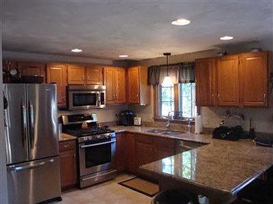 Young Cape in move in condition nice neighborhood setting.Pride of ownership shows in this home w/many extras. 1st floor features great rm w/ stained hardwood flrs, gas fireplace & built in Air Unit. Recently updated kitchen w/granite counters & stainless steel appliances. 13x11 1st flr bedrm is carpeted & currently used as an office. A french door from dining area leads to a composite deck for summer entertaining which connects to a lower deck with an above ground heatd pool (can be removed by seller, if desired)& another enclosed deck with hot tub & shower. 2nd flr features 2 Lge bedrms with loads of closet space,attic access, ceiling fans,& a full bath. Beautifully landscaped yard with irrigation, special lighting, shed & out door shower. Attached garage & full walkout basement rough plumbed for 3rd bath.This is a home you need to see!