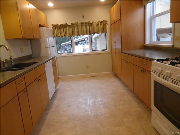 Amazing home. Newer custom applianced kitchen. Abundance of maple cabinets with soft close doors & drawers. Formal dining room, Spacious living room, computer room/den with french doors. Beautiful hardwood floors in den/computer room. plus master bedroom. Master bedroom has a private bath with walk-in shower. 2nd remodeled bath on 1st floor has awesome custom vanity/cabinet with soft close. Laundry room. Central Air on first floor. Upstairs has 2 nice size bedrooms with updated paint, & newer carpet. 2 areas with attic access. Plywood floor. Was used as a playroom at one time. Abundance of storage. Garage has great storage. Carport plus area that used to be a kennel. Master bedroom/den is on a crawl space. Crown moldings on main floor. Short commute to Fort Drum.
