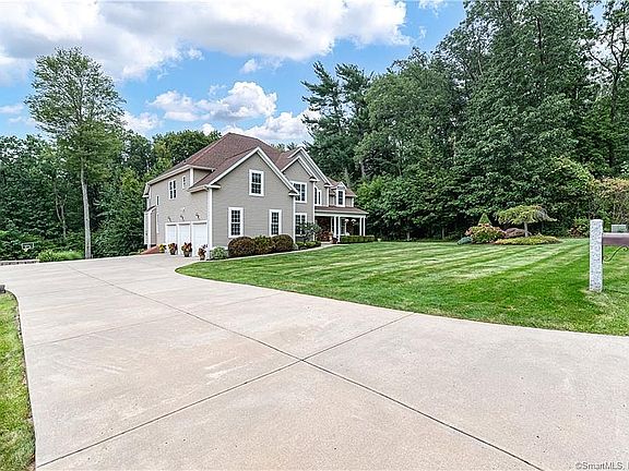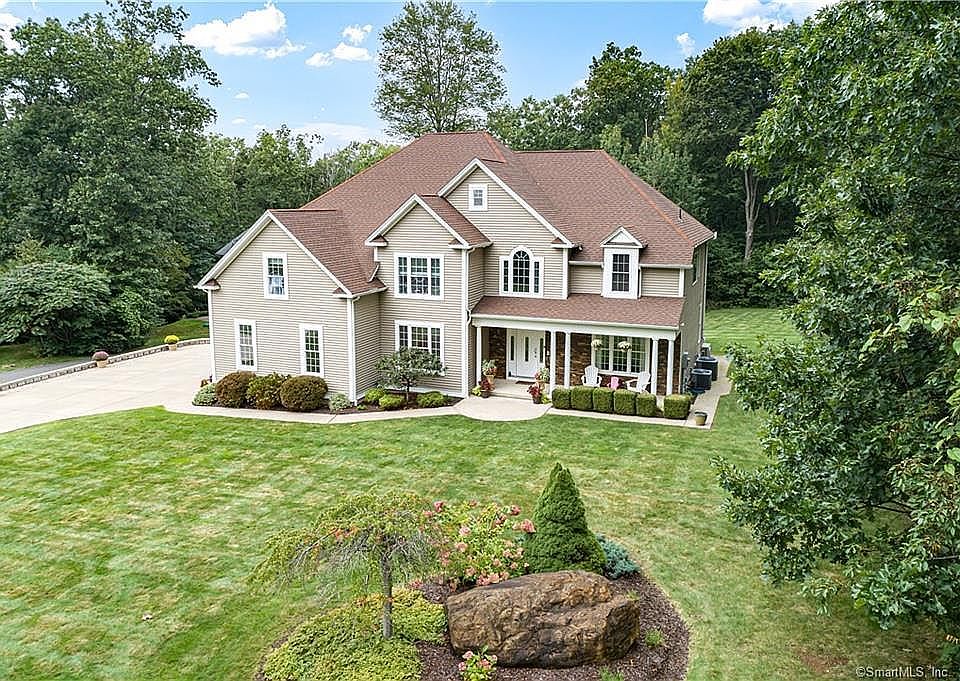 Magnificent in every sense of the word... this modern colonial is located in a desired cul-de-sac neighborhood in the town of Southington. The architectural detail in this 11 room masterpiece creates elegant yet inviting living spaces. The pristine 4 bedroom/4.5 bath home is graced w/the finest of finishes with soaring coffered and tray ceilings captivating its visitors. Enjoy the stunningly spacious and dream-like chefs kitchen w/center island consisting of high end cabinets and appliances (remodeled in 2018). Adjacent formal dining room and formal sitting room makes hosting ideal for holidays and get togethers. The home's 2 story living room is crowned with a coffered ceiling and fireplace. It features a wall of windows allowing natural light to flood the home while overlooking the large backyard. The first floor home office w/attached full bath will keep you from wanting to ever commute to work again. The 2nd floor hosts the enormous master suite. Features include a custom tray ceiling, gas fireplace, his & hers walk-in closets, & incredible spa-like sanctuary master bath. All bedrooms are en-suite with large closets. The finished lower level boasts its own home theater with custom bar/concession area, additional room with built-ins that could be used for a gym area, kid's play room or another office. A large and partially covered deck overlooks the level backyard which will be ideal for parties and entertaining on these beautiful fall nights. Truly an incredible home!