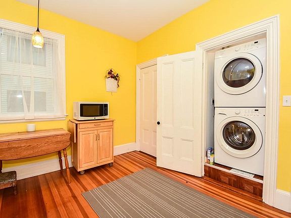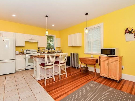 Conveniently located in West Medford, 56 West St is just across from the Mystic River. The home is walkable to Whole Foods/Starbucks, Medford Hillside, West Medford Square, Tufts College, the West Medford Commuter Rail, and the College Ave Green line. Offering 3 bedrooms, two full bathrooms, and a complete first-floor layout including an eat-in kitchen, living room, dining room, office, and two enclosed 3-season porches, 56 West provides a great design for living in West Medford. The kitchen includes a gas range, refrigerator, dishwasher, microwave, and laundry closet with a stacked washer and dryer. The kitchen island provides extra counter space and great space for snacking and there's still room to include a kitchen table. The home is heated by with gas by forced hot water radiators. Two-car tandem parking is available in the driveway.