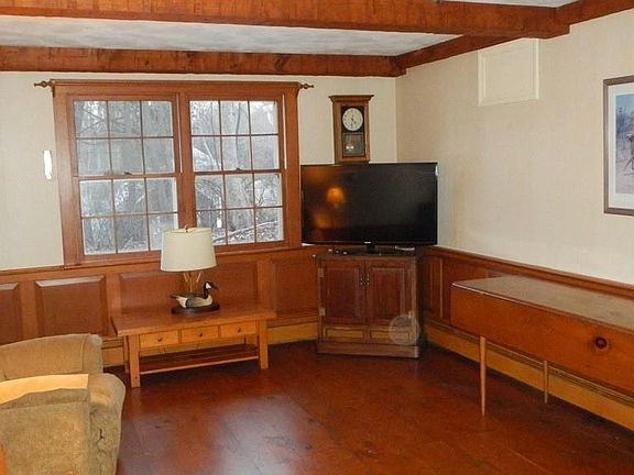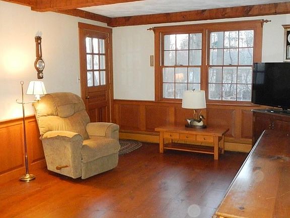 Comfortable 1833SF, 4 BR, 2 Bath Cape in desired center of town neighborhood. A cherished one owner home, with excellent potential to be updated has East/West exposure for great natural light & has an added full length breezeway family room that doubles as a formal dining room for holidays & entertaining which boasts custom raised panel wainscoting, beamed ceiling, crown molding and wide board flooring, personally hand crafted by the owner. The other main rooms have oak hardwood flooring. The first floor also offers 2 bedrooms, a full tub/shower bath, a sunny formal living room w/picture window, wood burning fireplace/formal mantle & a dine-in kitchen. Upstairs are 2 more generous dormered bedrooms & a second full shower stall bath. The basement has plenty of storage area and workshop space.. Knee wall attic storage area too. 2 Car Tandem garage - w/ a second overhead door to the back yard completes the space. Brand new high efficiency gas boiler and new roof just installed. Call Today