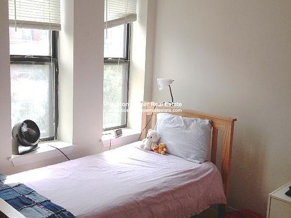 Skylight. Bright and quiet top floor, front facing, 2 bedroom large enough for 3. Large living room with bow window. New kitchen, dishwasher, built in microwave, and disposal. Tons of counter and kitchen storage space. White tile bath. Hardwood floors and recessed lights throughout. California closets. Cat ok with permission. Great location right next to Whole Foods in Symphony and green line. Close to Back Bay, South End, and all Fenway Schools. Laundry in building. 12 months