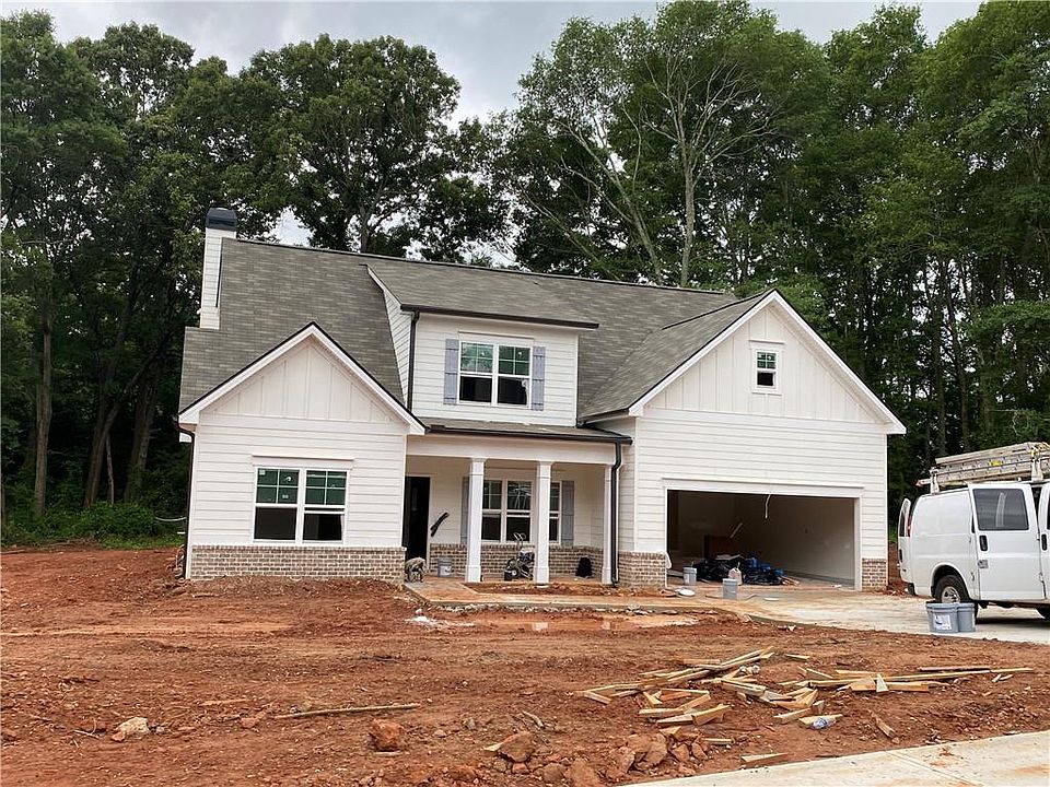 The Georgia Plan is an open concept plan that features a kitchen with a view into the family room. Kitchen has granite countertops and white cabinets with Stainless steel microwave, dishwasher, and range. The family has a wood burning fireplace with a slate finish. Rolled vinyl floors in the foyer, hall, family, kitchen, laundry and baths. Carpet in the bedrooms. Home has two bedrooms and two baths downstairs and has two bedroom and bath upstairs. Huge finished bonus room upstairs. Large Laundry room. This home features a nice size back patio. Westminster is one the best subdivision for those that like trees.