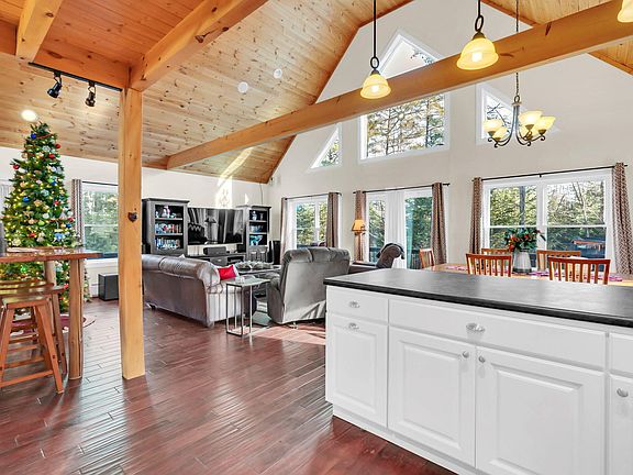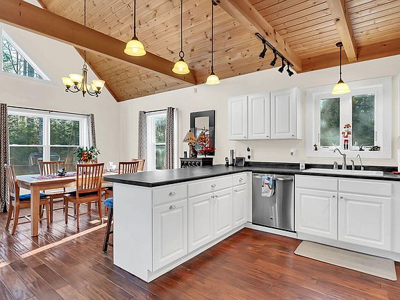 Located in the desirable Will View neighborhood, just 5 minutes to the slopes, this well maintained chalet style home offers a sunny open living area with cathedral ceiling and sliding glass doors leading to a wrap around deck. The lower level features a convenient mudroom entry area on the ground level to drop your gear and a generously sized family/game room with additional sleeping. 3 bedrooms including a second floor primary suite and a bonus sleeping loft. The home is tucked in on a private lot with mature trees and a detached one car garage completes the picture. Offered fully furnished including a hot tub.