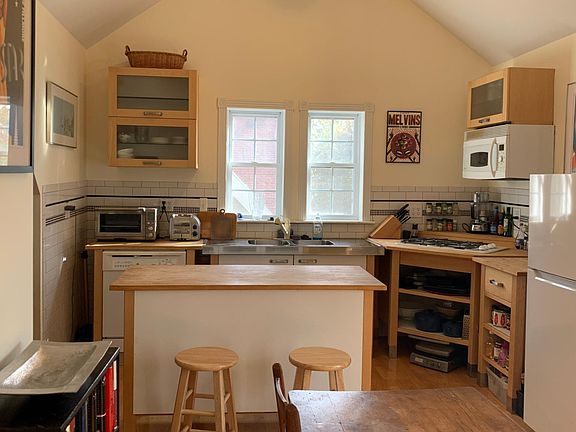 This top-floor one bedroom unit in the heart of Davis Square offers an abundance of sunlight flowing through the many windows. Enjoy a spacious, light-filled kitchen with a gas cooktop, center island, dishwasher. The kitchen overlooks the open living/dining area. Other features include high ceilings, in-unit laundry, hardwood floors, private deck, designated storage area in basement, and one off-street parking. This gorgeous unit located on a tree-lined street is steps from a bustling Davis Square, Red Line T stop, bus routes & major roads including 93 N/S, steps to restaurants, shopping, farmer's market, entertainment, gym, movie theater, parks, Somerville Community Bike Path. Tenant pays one month broker fee. Unit does not have a full sized oven