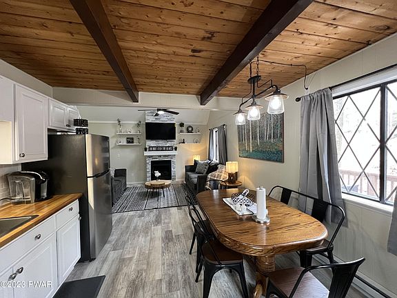 You'll say WOW when you see this Gorgeous 3 Bedroom 2 Bath completed renovated Chalet in the Amenity Filled Hideout. This beauty has new flooring, a cozy stone-faced fireplace for those chilly winter nights, an eat-in-kitchen, updated bathrooms and roomy loft for extra living space. The charming details in this home show true pride in ownership throughout. The outside is freshly painted and has a firepit to enjoy stargazing and the beautiful Pocono nights. This home comes fully furnished. The amenities include beaches, lakes, pools, clubhouse with restaurant and pub, golf course, skiing, tennis, indoor recreation complex, a fitness center, arcades, playgrounds, walking trails, and 24-hour security. Just two hours from NYC. Move in Ready. This is a must see!, Beds Description: 1 BED 2nd, Beds Description: 2+Bed1st, Beds Description: 1 BED 2nd, Baths: 1 Bath Level 1, Baths: 1 Bath Level 2, Sewer: WS Comm Central