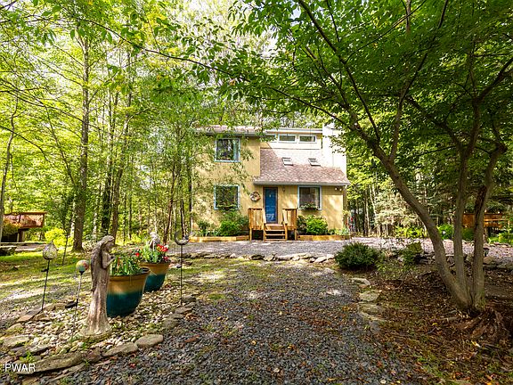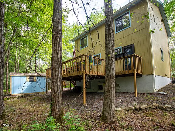 You are going to love this home with it's beautiful outdoor space and light and bright interior. Inside you will find an open floor plan with a cozy fireplace, a modern kitchen with granite counters, a bedroom, bath, and laundry on the first floor, a big loft and two bedrooms and a bath on the second floor. Outside you will enjoy the spacious deck overlooking woodlands, pretty and established perennial flowers and a nice garden shed. Located on a quiet side street, but still close to great amenities like the pool, beach, lake, lodge, and ski hill. Just a short drive to the clubhouse, golf course, and indoor recreation center. Not only will you love this home, you will love the amenity filled, gated community that is just around two to two and half hours from NYC and Philadelphia. Don't let this one get away!