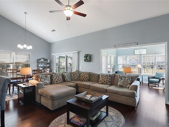 WHY WAIT TO BUILD? This gorgeous move-in-ready Adams model boasts hardwood floors, fresh paint throughout, a Carolina room & a beautiful screened porch overlooking the lagoon. All bedrooms on the first floor with large bonus/flex room upstairs. Golf cart ride away from the new Publix shopping center! Miles of walking trails, community pool/gym & dog park complete this neighborhood. Close proximity to Savannah, Beaufort, & HH Island. Zoned for May River High School. WELCOME HOME!