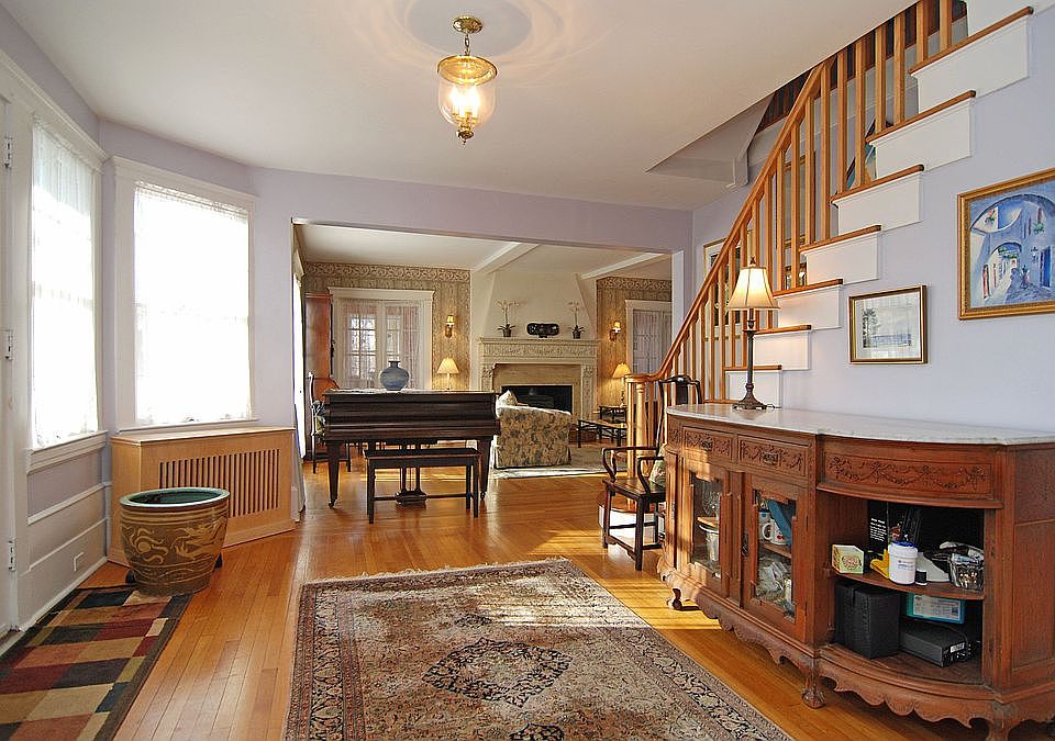 Set on a large lot within easy walk of train and town, this home offers high ceilings, grand spaces, open-air, southern views and complete privacy. Open flow includes great foyer; spacious living rm w/fplc & doors to terrace; sunrm w/fplc; formal dining rm w/French doors to yard; kitchen with breakfast area, laundry & powder room. Master bedrm features a fireplace, sleeping porch & updated marble bath, add'l 3 bedrms, new hall bath and sunny third floor studio w/full bath & fifth bedrm. Neighborhood Description Pelhamwood is a leafy and hilly section of Pelham that is desirable for its easy walk to the Pelham train station, downtown shops and all of Pelham's award-winning schools.