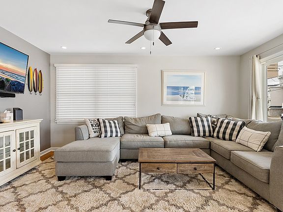 This beautiful first floor, three bedroom and two full bath condo is perfect for the buyer looking for one floor living. The main living area has an open concept that leads to the spacious outdoor covered patio space. The hallway bathroom features a bathtub/shower combination. The Primary Bedroom, renovated in 2021, features a new Pottery Barn queen-sized bedroom set and a brand new full ensuite bath. The second bedroom is outfitted with a queen-size bed, and the third bedroom has bunk beds with a full-sized bottom bunk. Located just three blocks from town, it makes going to dinner, drinks, shopping, or ice cream an easy walk. A 30 second walk to the public dock on Sixth Avenue to enjoy swimming, paddle boarding, kayaking and the perfect place to watch the sunset. First floor unit can park up to three cars in the front of the house and the second-floor unit utilizes the three spots in the rear of the house with access from Barry Road. Additional street parking is available as well as the Municipal lot located on the corner. There is dedicated shed for beach chairs, bikes, all your beach gear and more. The private outdoor shower is perfect after a long day at the beach. Both units split the cost of the Master Insurance policy, Flood insurance, and annual weed spraying.