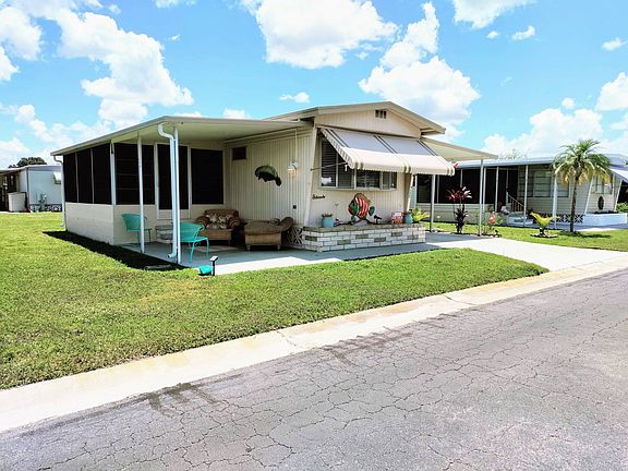 Love the beach? Your Beach Retreat awaits your arrival and is just 20 short minutes from the best beaches around! Welcome to ...."The Coconut House" with a Beachy and Modern decor. Remodeled and ready for you to make memories! This 2 bedroom 2 bathroom home includes a covered porch, enclosed Florida room (which can be used as a 3rd bedroom), carport with plenty of room for your patio furniture, and attached shed with washer/dryer. Along with the beachy feel, there are many upgrades which include a new Air Conditioner in June 2021, hot and cold water lines have been replaced, the hot water heater has a new thermostat and new element, new blinds, new lighting, new faucets, new flooring and toilet in the bathroom, new fans, new stove 2021, new interior paint, baseboard heating in addition to forced air heat. You will just love this 812 sq ft Beachy Paradise! Comes partially furnished and negotiable. The leased land is $774.00/ month which includes water, sewer, trash, and lawn maintenance. Close to the best beaches, boating, fishing, miles of recreational trails, shopping, boutiques, fine restaurants, championship golf courses, sporting events, and healthcare facilities. Camera Security at the entrance gate and is pet friendly (some restrictions may apply). The Clubhouse includes a billiards room, exercise equipment, a reading library, and a large recreational room with a spacious kitchen. A large 5-acre lake, stocked with fish, a 52 sq ft heated pool, and multiple Shuffleboard Courts. This 55-plus active lifestyle has planned activities, including water aerobics and organized leagues for shuffleboard, bowling, golf, bingo, monthly coffee hour, cribbage, euchre, poker nights, cookouts, potluck dinners, dances, bus tours, shows, and cruises All listing information is deemed reliable but not guaranteed and should be independently verified through personal inspection by appropriate professionals. Integrity Mobile Home Sales cannot guarantee or warrant the accuracy of this information, measurements, or condition of any property. Measurements are approximate. Lot rent is subject to change.
