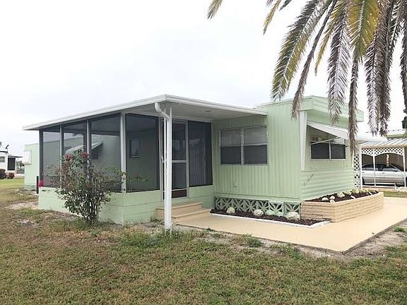Seller Motivated! Pride of ownership shows in this nicely upgraded, reasonably priced 2 Bedroom, 1 Bath land leased mobile home in the peaceful, conveniently located 55+ community of Pescara Lake. The kitchen has been updated and has a gorgeous back-splash, new cabinets and newer appliances. Freshly painted, new screens. Tile and vinyl flooring throughout. Home comes furnished and also includes a brand new washer and dryer. Screened porch to sit and relax and enjoy the Florida weather. Lawn has recently been re-sodded. Don't miss out on this fantastic deal! Just a few touches to make it your own. Move in ready! Monthly lot rent fee $638 includes lawn maintenance, water, sewer, trash and recycling. Pescara Lake Mobile Home Community has a large heated pool with deck, rec hall with large kitchen for entertaining, exercise equipment & library. Shuffleboard courts, horse shoe pits, large lake with fish and an active HOA. This is a pet friendly park (restrictions).