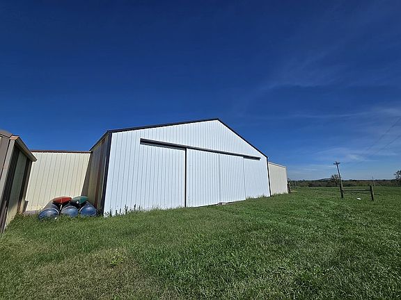 A generous metal barn (50x80) with two 20-foot lean-to sheds, perfect for equipment or animals.