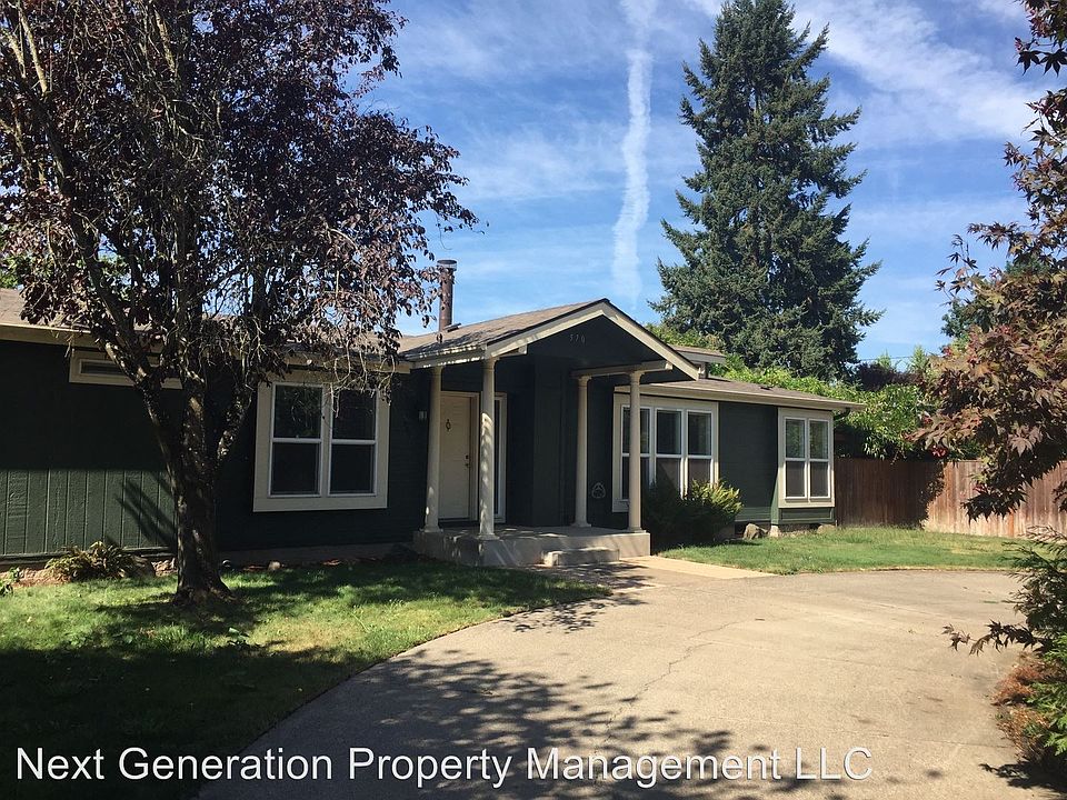 Beautifully landscaped, spacious home near bike path and river! - A rare find! A lovely, well maintained, 4 bedroom 2.5 bathroom home! This is a great house with tons of space! Formal living room off of the spacious entry, leads into a formal dining room. The kitchen is loaded with cabinet space, lots of counters, kitchen island and walk-in pantry. The kitchen overlooks the family room, with vaulted ceilings, fireplace, and french doors to the back yard. There is a half bath and laundry room with another door to the back deck. Three good sized bedrooms and another full bath are found at the end of the hallway. The large master bedroom has a slider to the back deck and an attached en-suite. Master bath has walk-in closet, soaker tub, dual sink vanity, shower and separate water-closet for the toilet. Lots of windows, high ceilings and skylights bring a lot of natural light to this home! Beautiful bamboo wood flooring throughout the majority of the living space. Heat pump for heating/AC. The living space is extended out into the back yard, with a large deck and stamped concrete patios. There's raised garden beds, and a detached double car garage with car access from the alley. Circular driveway in front yard. Dogs accepted with additional security deposit and pet rent. Two dog limit. Walking distance to Willamalane playground, bike paths and river. This house is a must see! Call today for our showing, or visit our website for more information and to apply. No Cats Allowed (RLNE3543178)
