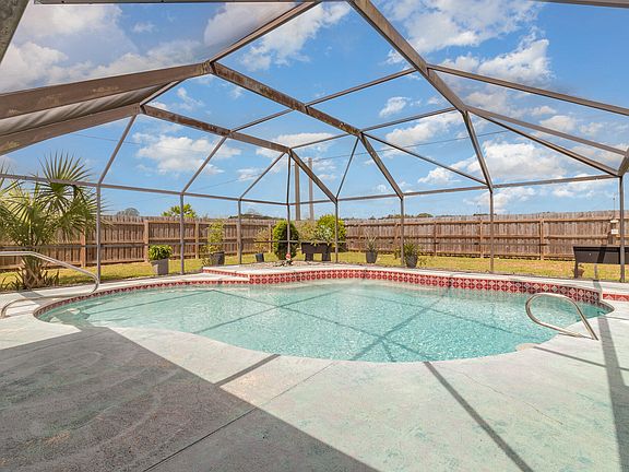 Nestled in the charming Northeast Palm Bay neighborhood, this 3 bedroom, 2 bath, POOL HOME offers a 2020 roof ,2018 AC with balance of 10 yr. warranty, fence 2017, Solar panels to keep those electric bills to a minimum!, in-home whole house generator and new motor in 2018, fridge 2020, a second refrigerator, new vinyl flooring throughout all three bedrooms, saltwater pool system with a new pool pump in 2021, heated pool, washer and dryer 2023, a new stove 2023. With fresh paint in the bedrooms, this home is move-in ready and waiting for your personal touch. The underground propane tank for the in-home generator and electric underground system add to the convenience and efficiency of the property. Additionally, an auto vacuum for the pool makes maintenance a breeze. Located in a great area close to schools, dining, shopping and more!