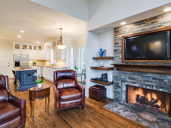 This beautiful brick home has been renovated throughout & includes high end finishes found in much more expensive homes. 9' ceilings, master suite & a living area perfect for entertaining on the main floor. Covered entry & spacious foyer. Dining room seats 12 & has french doors to the front patio. Two story living room w/faux stone fireplace & two french doors that lead to the new deck w/a firepit & a view of the private backyard. Dramatic family room w/wall of windows & second custom fireplace opens to the kitchen which has an eat-in area & island w/a breakfast bar.