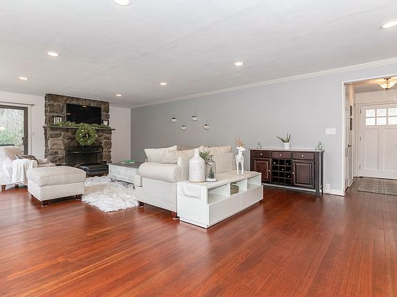 Own a piece of Silvermine History! Built by the famed 1930's Broadway actor, Greek Evans, Greek and his wife originally owned a 40-acre farm and this property was part of the original farm. They built a 5,000 seat amphitheater that would become know as "Theater in the Woods." This unique home is set back from the road, was built in the "craftsman" style but today, has a contemporary feel. The upper level features a sun-filled living room/great room with the Greek Evans signature stone fireplace, sliders to the deck and lots of windows that overlook the pond! The dining area has plenty of space for large dinner parties and the kitchen, with granite counters, is great for preparing meals. The master bedroom has corner windows that let in plenty of light and the guest bedroom features access to the walk up attic that's great for storage. The lower level includes the family room with another signature stone fireplace, an additional room that could be a mud room or home office and another full bath. Sited on a acre of property with your own handcrafted pond originally built in 1948, it may feel like you're in the country yet very conveniently located to major roadways and shopping.