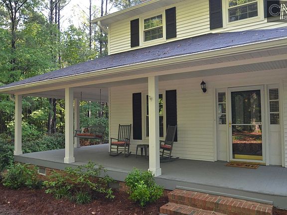 Looking for privacy and a peaceful setting but convenient to interstates and shopping then this is it! Nestled on a natural, wooded 1.81 acre lot in Blythewood is this charming home offering a covered wraparound porch & 2 car garage. This home is situated off the road and greets you with a circular driveway. Inside find Family Room with masonry Fireplace, NEW hardwoods floors in the Foyer, Dining Room, Kitchen & Pantry, Formal Dining Room, Kitchen offers white cabinetry, bay window, huge pantry and lots of natural light! New carpet and smooth ceilings throughout; all bedrooms up with spacious Master Suite with his and hers closets, private bath with separate shower; 2nd bedroom offers a bay window; cute reading nook up; large rear patio!