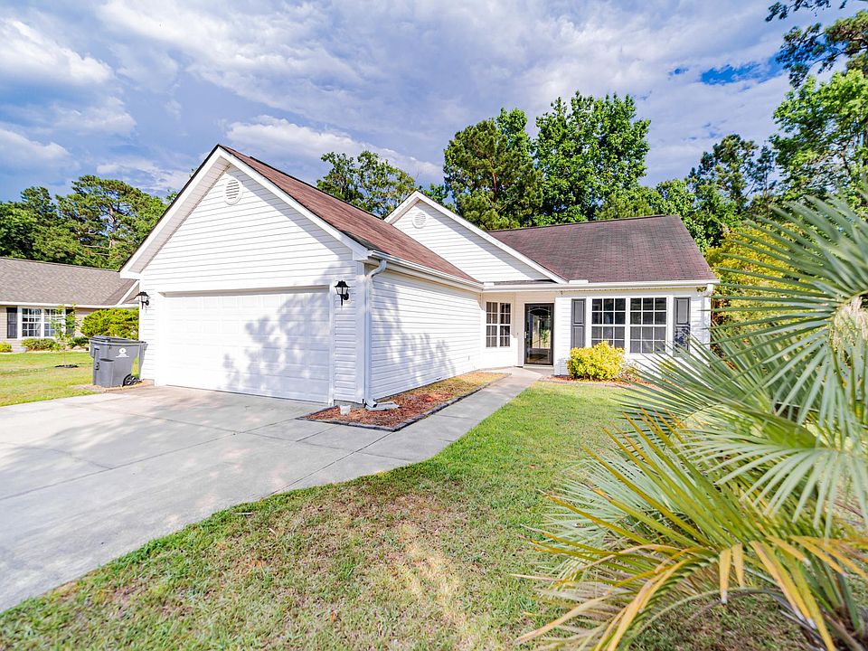 Beautiful home available for rent in quiet Bridgeport community located on the Intercoastal Waterway in Myrtle Beach. 3 bedroom, 2 bath, 1650 sq. ft with Carolina Room and 2 car garage. The dine-in kitchen boasts granite countertops and stainless steel appliances. Unique tile floors adorn the main living areas, from the kitchen to the living room and extending into the heated and cooled Carolina Room. All three bedrooms have brand new wood-look Luxury Vinyl Plank flooring, and the entire home has been professionally cleaned and freshly painted. Located in the Fantasy Harbor area, just minutes from the Myrtle Beach International Airport, Coastal Grande Mall, and a variety of dining, shopping, and entertainment options. Monthly rent includes water and landscaping. Annual lease and one month's security deposit required at signing. Property has a fenced-in back yard. Owner is willing to consider some pets with non-refundable pet deposit. Monthly rent includes water, trash pickup, and landscaping. Annual Lease required, along with first month's rent, one month security deposit, and non-refundable pet deposit (if applicable). No smoking inside home, including in Carolina room. All smoking must be done outside only.