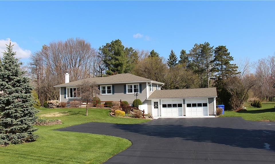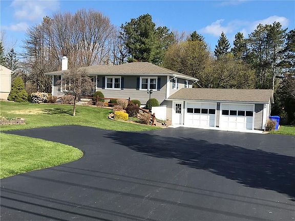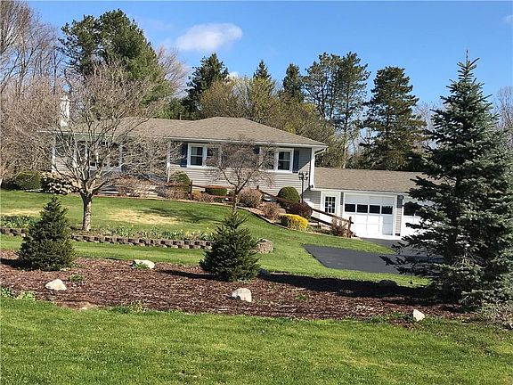 Welcome to your new home! This impeccable Ranch built on the side of a hill is ready for you! Home was sided about 5 years ago, amazing curb appeal! This home offers 3 bedrooms and 1 full bath. The kitchen opens into a dining room which then leads into the living area. First floor boasts brand new flooring all except for the bedrooms which has wall to wall carpeting. Off the kitchen you will find a door which leads out to a gorgeous 16x20 composite deck that has breathtaking views of the backyard. The lawn is well kept with landscaped gardens and a garden pond near rear garage.The basement also has been given new flooring in the 1 full bath and laundry room. There is also a large bedroom with sliding glass doors, wood burning stove and full living space with plenty of storage. Furnace and A/C approximately 3 years old. All appliances are fairly new and are included. The house was originally on .45 of an acre; owners purchased the land in the back of the home and now it is now an amazing 1.85 acres! The backyard has endless possibilities! There is an attached 2 car garage, 2 doors in the front of the home and 1 leading out into the backyard. This spectacular home won't last long!