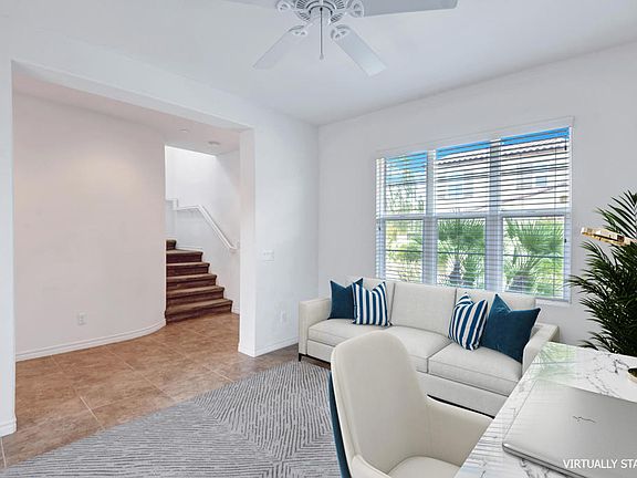 Welcome to the Esperanza neighborhood in the gated community at Spanish Walk in Palm Desert. You will enjoy the peaceful comfort of Old World style meets with New World Luxury. Debuting to the market for the first time since being built. This detached two-story home defines desert resort living with a low maintenance lifestyle. Open floor plan boasts 2,348 square feet of living space, all three bedrooms are upstairs, with two bathrooms, and a powder room downstairs. Primary room is ensuite with a large walk-in closet, expansive upstairs loft multi-use area for additional family room, indoor gym, media room or office space, with a nice outdoor balcony, serving perfect for reading a good book or enjoying your morning coffee. Downstairs great room has a fireplace, adjacent dining area, gourmet kitchen with island, combo living room den with french doors that leads to the outdoor courtyard, separate laundry room, roomie two car garage with direct access into the home and a second door that leads to the side yard. There is also a third outdoor sitting area with direct entry to the back of the home. Lots of recreational opportunities starting with the junior Olympic main pool, along with other community pools, fitness center, billiard room, spacious recreation center for entertaining, park with play equipment, front and side yard maintenance all included in the low HOA of only $264. This part of Palm Desert is in the Imperial Irrigation District for lower electricity cost.