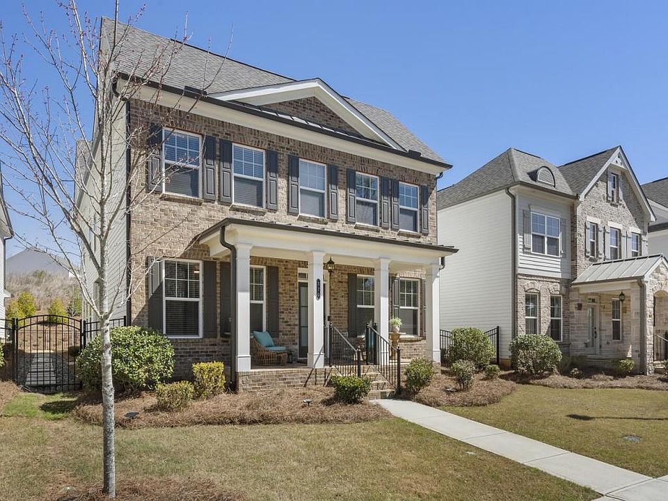 Located in The Park at Deerfield, a gated community, this custom home features light filled rooms and beautiful finishes throughout. Minutes from Avalon and Halcyon this amazing home features open concept living. Gourmet kitchen has beautiful white custom cabinets, stone counters, stainless steel appliances and breakfast nook. Separate formal dining room has beautifully detailed board and batten. Butler's pantry connects the dining room and kitchen for ease of entertaining. Kitchen overlooks the family room featuring custom built-ins flanking the stone fireplace. Main level also features a covered outdoor patio with a fenced in yard and office or formal living room. Hardwood flooring throughout. On the second level the owners suite features vaulted ceilings, a wonderful spa-like bath with soaking tub and seamless shower, and an oversized walk-in closet. Secondary bedrooms feature a guest suite with a private bath and walk-in closet. Additional two bedrooms feature great walk-in closets and share a jack and jill bath. Two car garage features Tesla EV Wall Charger. This home is one of the few that overlooks the green space from both the front and the back of the property which features 13 +/- acres of walking trails and recreational space, a clubhouse, pool, playground and tennis courts. Situated right inside Forsyth County.