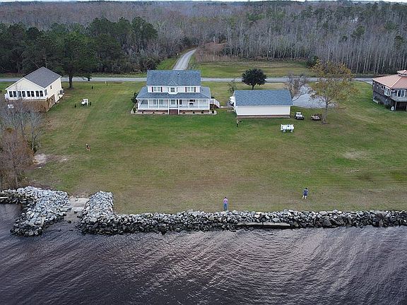 Will offer 3% to buyers agent. Please do not ask about lease to own. Beautiful waterfront home standing on three parcels with over 200 feet of bulkhead waterfront and private boat ramp. Detached 3-bay garage (1214 sqft ground) added in 2010 with ample attic storage accessible by permanent internal staircase. Home is well maintained with upgrades throughout. Less than an hour to the OBX beaches but located on the peaceful Albemarle Sound. Amazing sunsets in this fisherman's paradise with plenty of space for all your toys. --- Upgrades: Home alarm, internally wired indoor and outdoor speakers, generator, Central vacuum --- New Anderson windows and doors 2017 New dual HVAC installed in 2011 Can provide tax, insurance and electricity costs upon request 2016 Tax Value: $513,900 Zestimate does not include 2 additional parcels or garage. Porch: 1193 sqft Two front pecan trees removed after last hurricane. Clarification of parcels: Garage sits on one, House sits on one and 3rd is 10-20' strip for boat ramp. Only one HOA fee as these were combined.