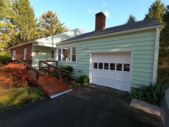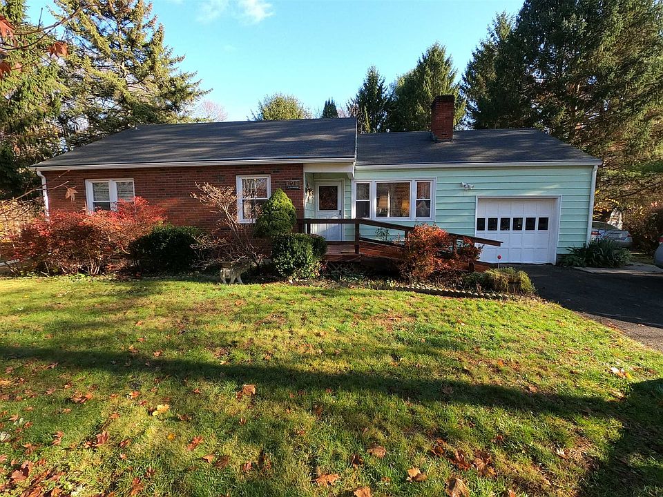 An adorable one level living 3 bedroom home, beautifully landscaped with gardens, freshly painted and ready to move in condition has arrived. If you are looking for a backyard with privacy and a country feel yet minutes to schools, shopping, hospitals, restaurants and Metro North - then this is the home for you. Enjoy the cool evenings and winter weather by a cozy living room fireplace watching a variety of colorful wild birds through the dining room window. A generous sized eat in kitchen, hardwood floors throughout, central air and a full unfinished basement for additional space makes this home special. You will be pleased with the maintenance free exterior with a brick front, vinyl siding, seamless gutters with guards to keep out the falling leaves as well as a 8 year young roof, a 7 year young septic system and replacement windows. For all your outside projects/tools there are storage/shop sheds in the backyard and an oversized one car attached garage. A well maintained home, wheelchair accessible makes this the perfect home for everyone!