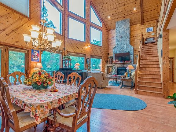 ABSOLUTELY BREATH-TAKING! MUST SEE movie of waterfall! Private but not secluded 6 acres with YOUR OWN PRIVATE CREEK AND WATERFALLS (not the property line like most of them, but you own BOTH sides, the whole creek!). located ON A FORESTRY ROAD, goes into THOUSANDS OF ACRES OF FORESTRY ALL THE WAY TO BRASSTOWN BALD to walk, ride horses or 4-wheelers or mountain bikes. Would make a great private estate for nature lovers or a profitable Air B&B with 4BRs/4BAs and a full unfinished basement! Mostly wooded, but some pasture land for animals or garden or gatherings at entrance. Add a big beautiful lodge home with 4 bedrooms, 4 bathrooms (2 gorgeous master suites with access outside to waterfall side - you will never need a sleeping pill again), big open loft for game room, high-end custom kitchen with SS appliances, granite, tons of cabinets; large screened room off kitchen; big laundry room. Huge open great room with soaring ceilings, wall of glass (with blinds that go up and down with remotes), wood floors, hotel lobby style fireplace with all the rock indoor floor-to-ceiling, huge hearth. Trex decking on front porch, back decks (3 levels). Every 3626 sq. ft. is quality and beauty. Plus unfinished full basement 1956 sq. ft. is open for storage or expansion. 2 car garage, several outbuildings, tons of firewood, carport. One owner home, moving to be near kids and grandkids & downsizing. Just this house would cost over $600K, land is priceless! Great price, make offer!