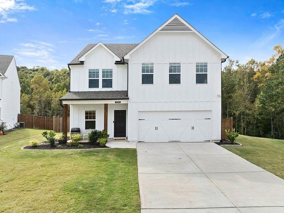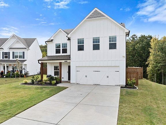 BETTER THAN NEW! Built in 2022 this beautiful home features MULTIPLE UPGRADES you don't get in new construction including a private fenced in backyard! The exterior showcases a farmhouse style with board and batten siding, cedar columns, and an upgraded plantation style garage door. Step inside to a spacious open concept main level with high ceilings, LVP flooring throughout, and a versatile formal dining/ sitting room. The kitchen is sure to impress with 42" white cabinets topped with crown molding, quartz countertops, tile backsplash, stainless steel appliances, a large walk in pantry, and an island overlooking the family room (this space is enhanced with plasma pre-wire for easy media setup). The open staircase with iron spindles leads to the upper level where you'll find an oversized primary suite with tray ceilings and an ensuite with framed mirrors, double raised vanities with marble countertops, and a walk in closet. Three secondary bedrooms, a full bathroom with double vanities, and a laundry room complete the upper floor. In addition to attic space, there is a custom built storage room beneath the staircase and accessible via the hallway closet. The flat and FENCED in backyard with a covered patio and an extended 12'x10' patio is perfect for pets, kids and relaxing after a long day. The backyard extends past the fence and overlooks wooded views! Willow Oaks is conveniently located off of Ball Ground Hwy, just minutes from I-575, Downtown Canton and Ball Ground, Northside Hospital Cherokee, and The Mill on Etowah. Don't miss the chance to make this home yours!