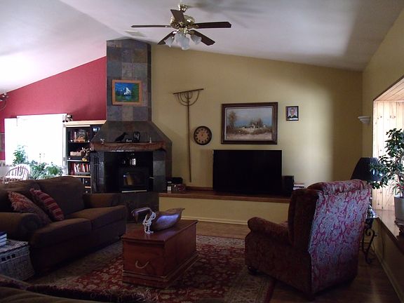 One level living with beautiful finishes! Slate fireplace with wood burning stove warmly greets you into this well planned out Farr built house. Radiant heat for those cold winter mornings to awake to. Reverse osmosis and water softener included. Slate countertops in kitchen area, and large pantry in laundry, conveniently located just off kitchen. All bedrooms have ceiling fans, and master has large walk in closet and huge jetted tub. Perennials and fruit bearing trees. Updated boiler and gutters. Nice big backyard for BBQ'ing! Come see today!!
