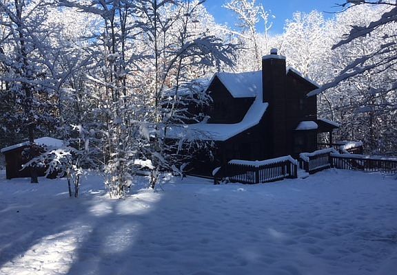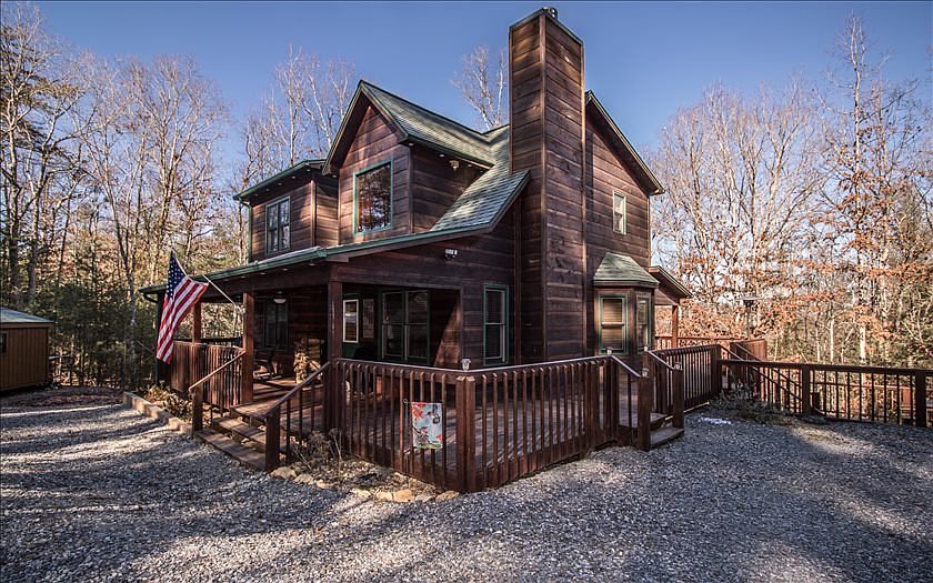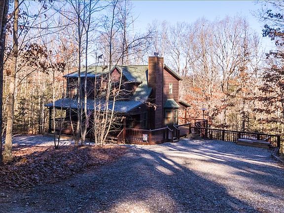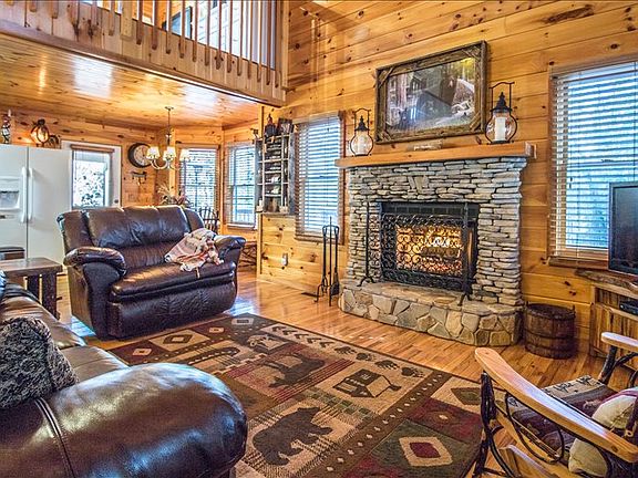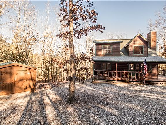 Lovingly maintained property with tongue and groove walls and ceilings, some dry wall & lots of cabin decor,including horn cabinet & drawer pulls, log towel racks, custom wine shelf. With lots of furniture included: kitchen table, w/chairs and bench, living room furniture and custom tv stand and end table, and a couple beds & outdoor furniture. (See attached list for details) Huge S/S gourmet sink, Hardwood floors & carpet, jetted master tub, & window shades throughout. Wood burning fireplace, (or gas connection can be reinstalled if you prefer). Huge terrace level bunk room w/high ceilings & great storage shelves w/door to patio and fire pit, porch swing & swing set. Approach to home has Mtn views, pastures & rollng fields. Road is maintained by county. Four ceiling fans on outside porches keep the summer nights cool. Generous loft can be additional bedroom or office.