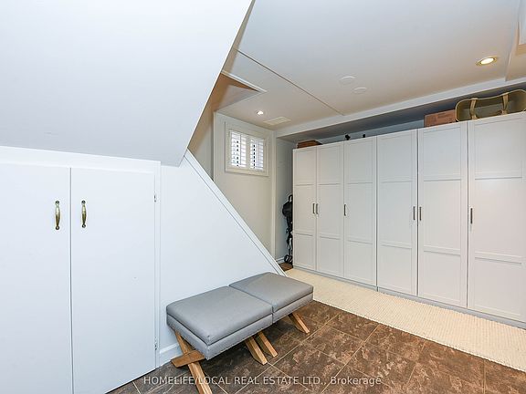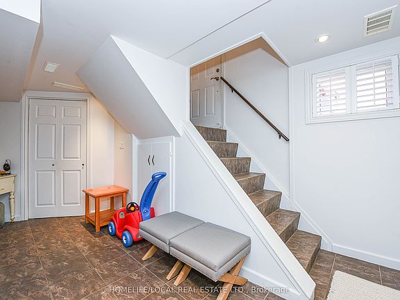 Refinished hardwood floorsNeutral paint tonesElegant chair rail mouldingSlate flooringWalk-out to the backyardFully finished drywalled basementAdditional bedroom
