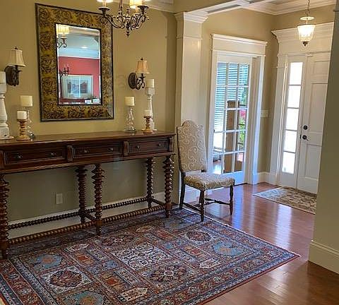 Immaculate move-in ready 5bd/3.5ba home on 1.67 acres. Custom redesigned & remodeled in 2006 w/ exquisite attention to molding & detail. Open concept, 9 ft ceilings, custom Alderwood kitchen cabinets w/ quartz counter tops, custom owner's suite, office, exercise room w/ gym floor, tile & Gunstock Oak Durawood floors, 25X26 garage w/ custom storage, mud room, alarm system and surround sound.